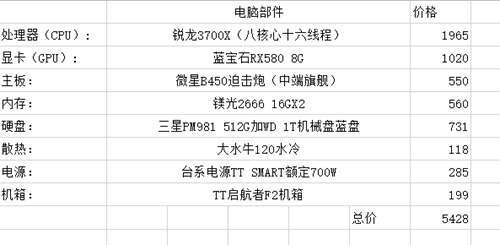 以下是适用于AMD党的中端配置,预算6000以内,可在1080P下流畅运行3A大作: