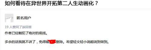 是动漫迷的,第一时间都知道今年第一个直接被宣布停止动画化的《在异世界开拓第二人生》,因为小说剧情是关于以二战期间在中国“屠杀3000多人”的日军侵华士兵作为“主角”,讲述其在转世到“异世界”后如何成为“人生赢家”并俘获众多美女芳心的故事。在某天被网友曝光,小说引进的网站“轻文轻小说”网相关负责人立即对其进行审查。并且对其小说做下架处理。