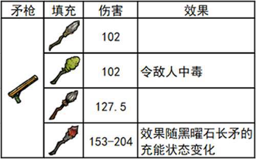 但矛枪的伤害计算方式固定为填充矛类武器基础伤害的3倍,并附加该武器的特效,比如填充毒矛时令敌人中毒。