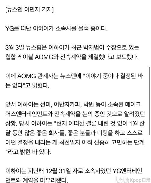 【Newspim独家新闻】[李遐怡签约AOMG!与朴宰范-Simon D成为同事!]3日据报道,李遐怡与朴宰范为社长的Hiphop厂牌AOMG签订了专属合约。