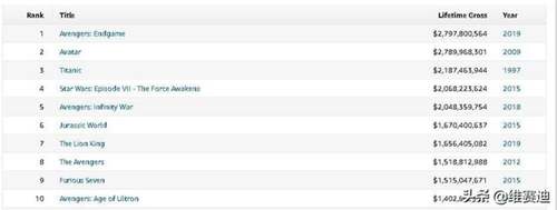 但不管前十名的榜单再怎么变化,甚至第一名也由《阿凡达》变成《复联4》,但总有一点是永远不会改变的。