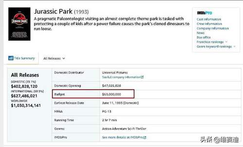 毕竟在1993年破票房记录的《侏罗纪公园》,制作成本也不过是6300万美元。