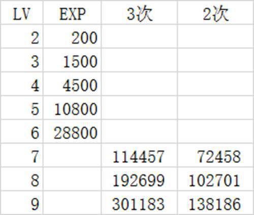所以,来简单拟合一下吧,看看lv7~lv9要多少经验。