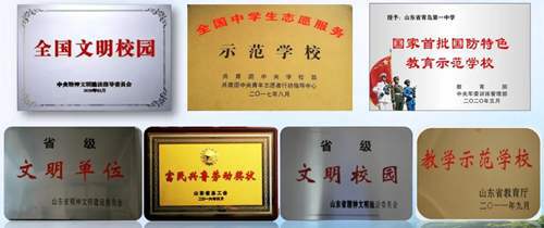 先后获得全国文明校园、首批全国中学生志愿服务示范学校、首批国防特色教育示范学校、全国模范职工之家、全国体育工作示范学校、山东省文明单位、首批山东省文明校园、山东省教学示范学校、山东省教育系统先进集体、山东省富民兴鲁劳动奖状、山东省师德建设先进集体、山东省先进基层党组织、青岛市教育改革十面红旗、首批青岛市中小学五星级阳光校园、青岛市立德树人先锋学校等近百项集体荣誉。连续多次获得青岛市教育局绩效考核普教组优秀等级,彰显了学校雄厚的办学实力和强劲的发展势头。