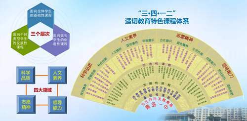 学校秉承“为生存与发展奠基”的校训和“以人为本、内涵发展、适切教育、多元育人”的办学理念,基于学生核心素养培育,加强课程实施与改革,精心打造“三·四·一二”适切教育特色课程体系。