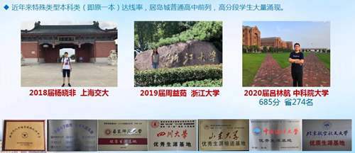 每年有众多学生考入清华大学、复旦大学、上海交通大学、浙江大学、哈尔滨工业大学等“双一流”、985、211重点大学。浙江大学、同济大学、山东大学、中国海洋大学等五十余所全国重点高校在学校设立了优质生源基地。具有开放的办学理念,与国内外众多学校建立了友好合作关系。