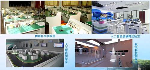 拥有学科实验室、航天科技实验室、人工智能实验室、人工智能机械臂实验室、录播教室、空中体育场、体育馆、艺术楼、数字录音棚、电视台、学生公寓等场馆设施,为学生提供了先进、安全、舒适、人性化的学习、生活环境以及全天候、全方位的优质服务。