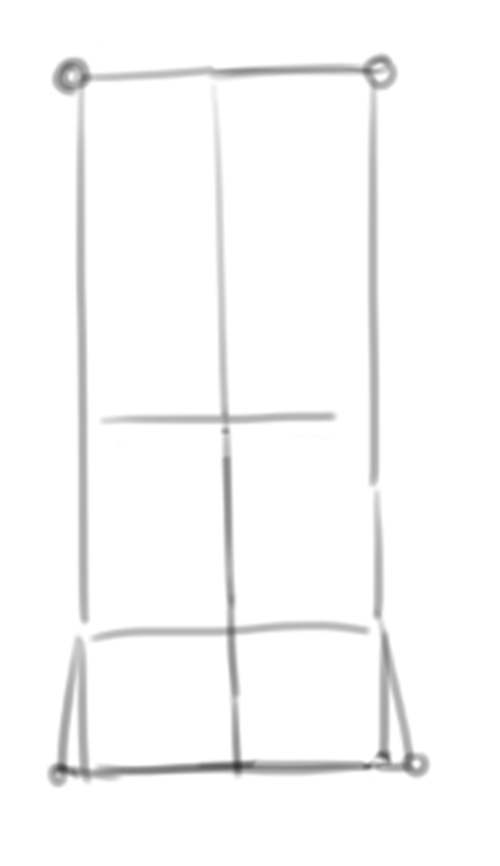 首先是身体的轮廓,先画出大概的体型。用一句话说身体的体型就像一张长方形的纸。请注意长度,像下面的图一样画一下。