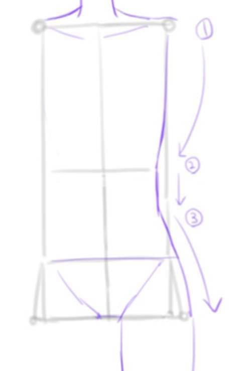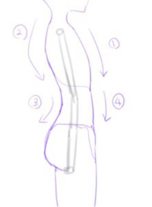 (3)面向转折的部分画屁股的线。要意识到腰的线周围是有骨盆的。