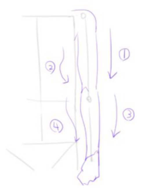 (1)从肩膀到肘的轮廓。也可以在结束的时候加上肘的凸感。