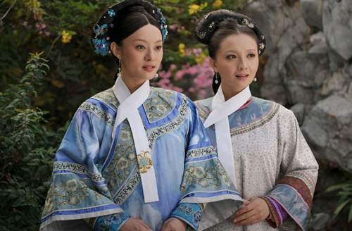 似乎不同等级的妃子与丫鬟的领带是不同的。回头我看看有没有资料是关于这个的。